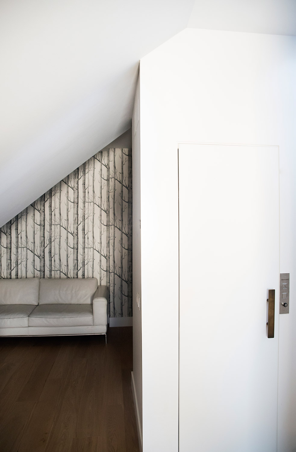 Para lograr esto unificamos el ático con un suelo de roble de formato ancho para darle amplitud y luminosidad.